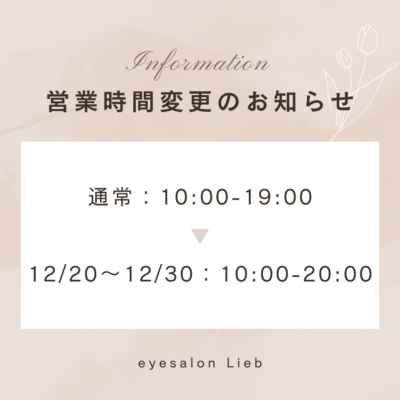 eyesalon Liebでは、貴方の理想の垢抜けメイクを実現するお手伝いをいたします。大手アイサロンで店長としての豊富な経験を活かし、1人1人のまつげの状態や希望に合わせた最適な提案を行います。皆様の目元の理想を叶えるために、丁寧でスピーディーな施術を提供し、通いやすい価格設定でご利用いただけます。お仕事帰りやお買い物帰りにも立ち寄りやすいeyesalon Liebで、誰よりも可愛い目元を手に入れ、モテ可愛度をアップさせましょう。ご来店を心よりお待ちしております♪